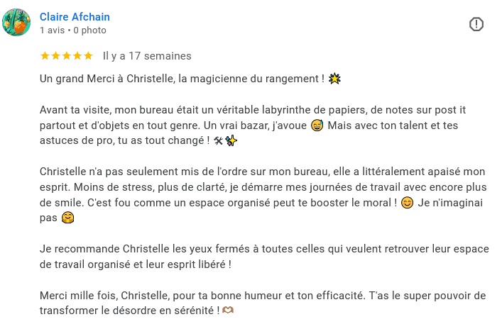 Je suis donc devenue Coach en gestion du temps et en organisation. Certifié Home organiser.